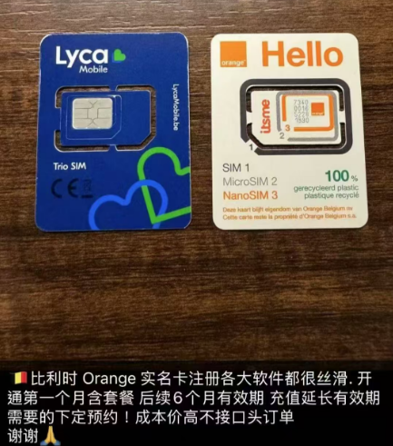 比利时电话卡海外本土号码注册卡6个月有效期国外手机验证卡